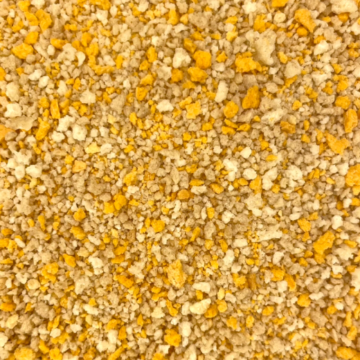 Pan rallado de granulometría gruesa, de color tostado, muy crujiente, ideal para elaborar Nuggets, filetes empanados, cachopos de ternera y pollo, etc.